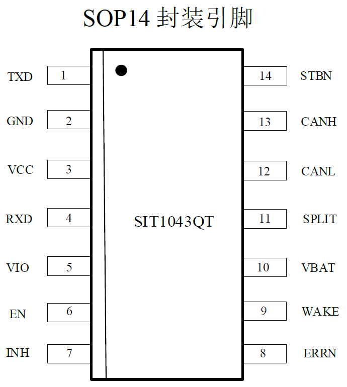 圖2:SIT1043Q的內(nèi)部系統(tǒng)框圖與封裝引腳功能圖