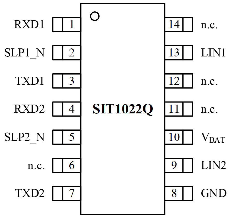 SIT1022Q是一款雙通道本地互聯(lián)網(wǎng)絡(luò)(LIN)物理層收發(fā)器,符合LIN 2.0、LIN 2.1、LIN 2.2、LIN 2.2A、ISO 17987-4:2016 (12V) 和SAE J2602標(biāo)準(zhǔn)。主要適用于使用1kbps至20kbps傳輸速率的車載網(wǎng)絡(luò)。SIT1022Q通過(guò)TXDx引腳控制 LINx總線的狀態(tài),可將協(xié)議控制器的發(fā)送數(shù)據(jù)流轉(zhuǎn)換為具有最佳壓擺率和波形整形的總線信號(hào),以最大程度地減少電磁輻射發(fā)射(EME)。LIN總線輸出引腳具有內(nèi)部上拉電阻,僅當(dāng)用作主機(jī)節(jié)點(diǎn)時(shí),才需將LIN總線端口通過(guò)一個(gè)與二極管串聯(lián)的外部電阻上拉至VBAT。SIT1022Q通過(guò)LINx引腳接收總線上的數(shù)據(jù)流,并由接收器的輸出引腳RXDx將數(shù)據(jù)傳送到外部的微控制器。